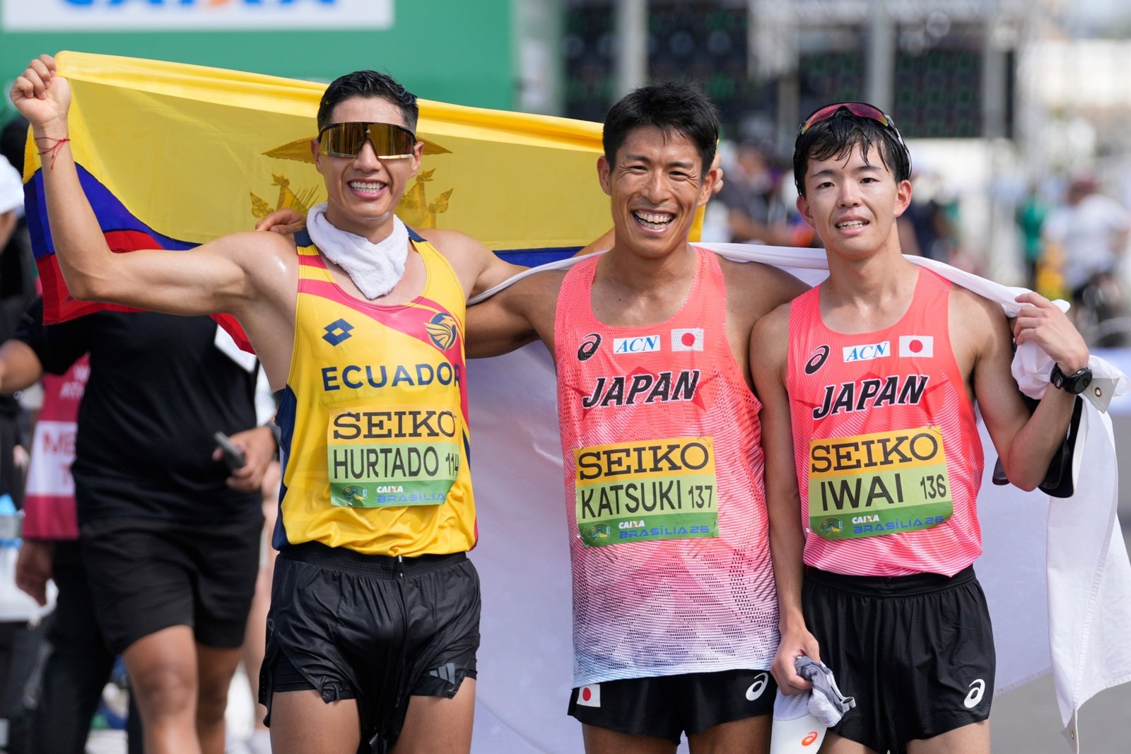 En una consagratoria actuación, el ecuatoriano David Alexander Hurtado logró la medalla de plata del nuevo maratón de marcha, disputado en la mañana de este domingo 12 de abril en Brasil. Fue al iniciarse el Campeonato Mundial de Marcha Atlética-Caixa Brasilia, donde Hurtado estableció el récord sudamericano de 3:05:57 y escoltó al japonés Hayato Katsuki (3:04:58).